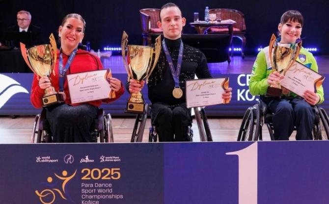 Илья Гладкий - победитель чемпионата мира по паратанцевальному спорту среди юниоров в общей программе.