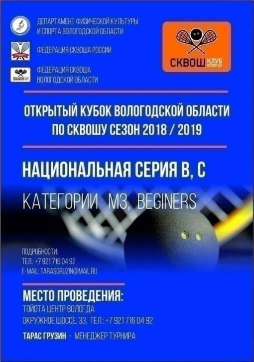 Открытый Кубок Вологодской области по сквошу в сезоне 2018/19 гг..