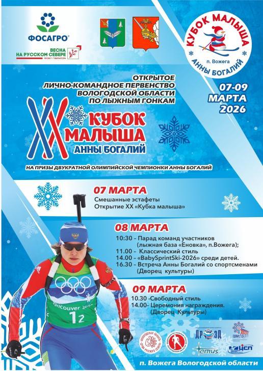 Кубок Губернатора Вологодской области по лыжным гонкам и лично-командное первенство Вологодской области по лыжным гонкам «Кубок малыша- 2026» на призы двукратной Олимпийской чемпионки А.И. Богалий.