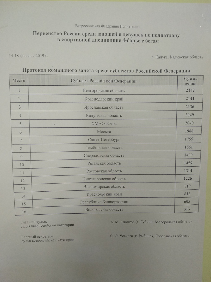 2 этап Кубка России и Первенство России по полиатлону прошли в Калуге с 14 по 18 февраля 2019 года. Команда Вологодской области заняла 16 место в общекомандном зачёте.